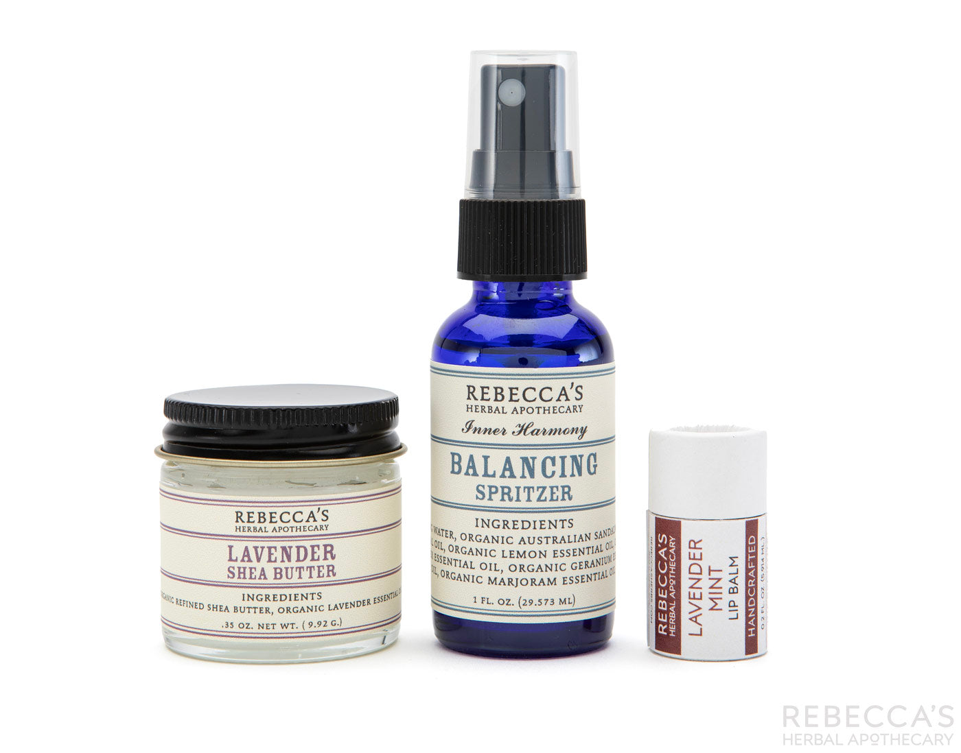 The Floral Trio Gift Bag is Rebecca’s homage to the power and beauty of the flower. The luxury and versatile benefits of Lavender shine through in Lavender Shea Butter, delivering soothing hydration to skin and a calming aroma. Balancing Spritzer is a Rebecca’s original blend of botanicals, anchored by Lavender and Geranium to evoke tranquility and comfort. Lavender Mint Lip Balm is a favorite for all-around lip support, rejuvenating lips with a moist glow. This trio of botanical favorites is made hands-on in small batches from carefully sourced, high quality ingredients and comes in a beautiful, reusable canvas zipper bag (different from the one in the photo), ready for gifting.
