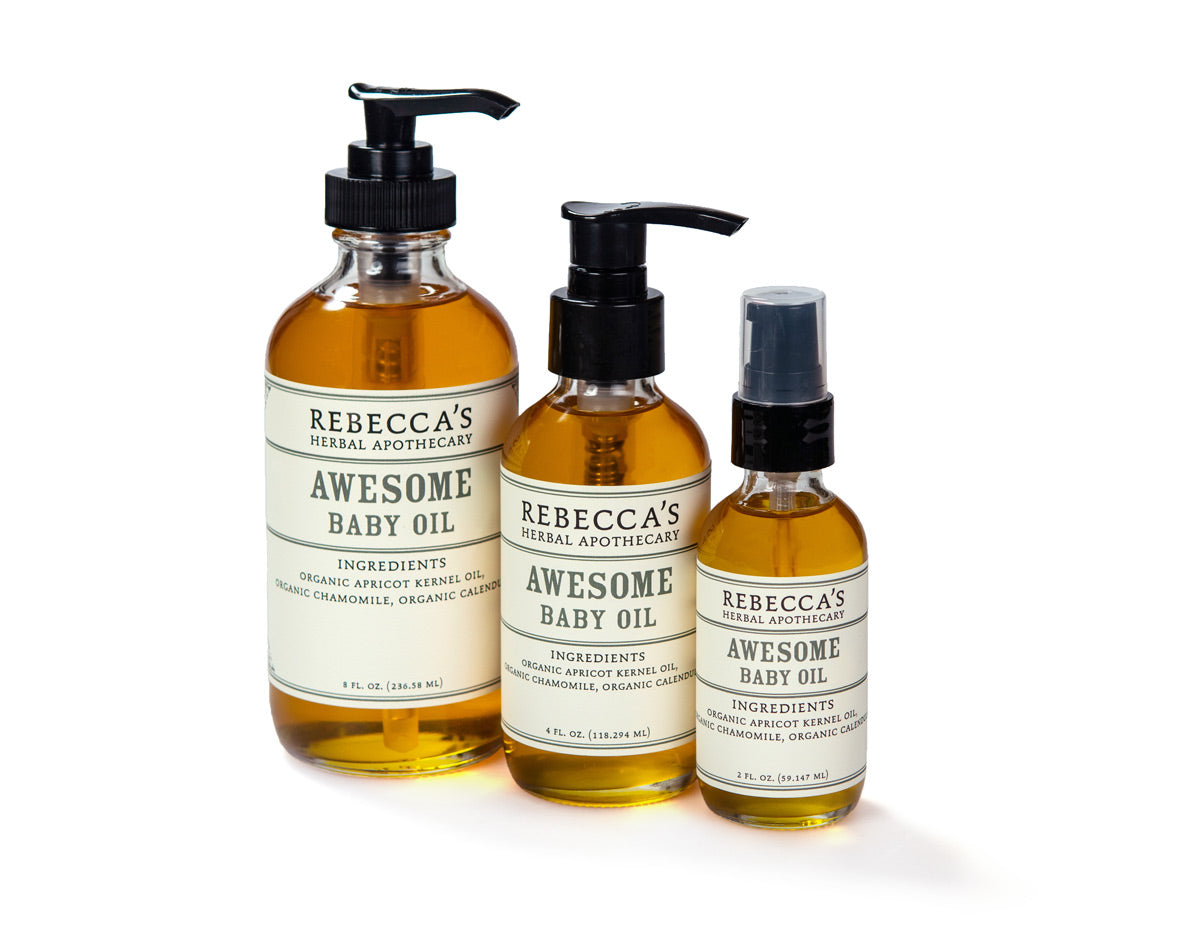 Specially created to nurture your precious little one, our Awesome Baby Oil was thoughtfully formulated with only pure ingredients: Chamomile and Calendula blossoms and Apricot Kernel Oil. The Chamomile and Calendula are infused for weeks in cold pressed Apricot Kernel Oil, then gently strained and decanted creating a soft and soothing special blend. Created to moisturize and nurture baby’s skin this formula is quickly becoming a favorite with parents as well. Handmade, nutrient dense, naturally rich in vitamin A and E, Awesome Baby Oil is soothing and hydrating on skin of all ages.